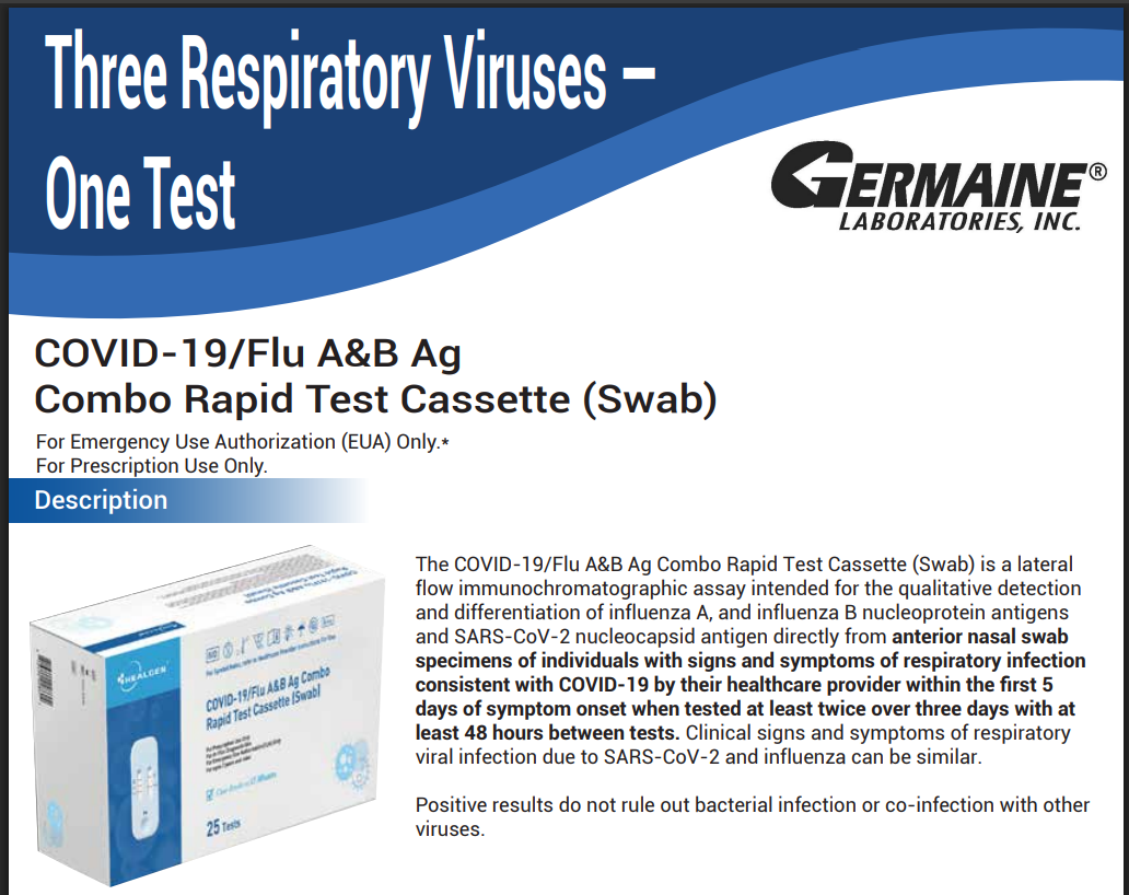 COVID-19/Flu A&B Ag Combo Rapid Test Cassette (Swab) 25 Tests