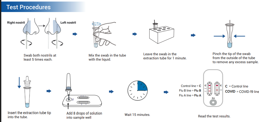 The COVID-19/Flu A&B Ag Combo Rapid Test Cassette (Swab) is a lateral